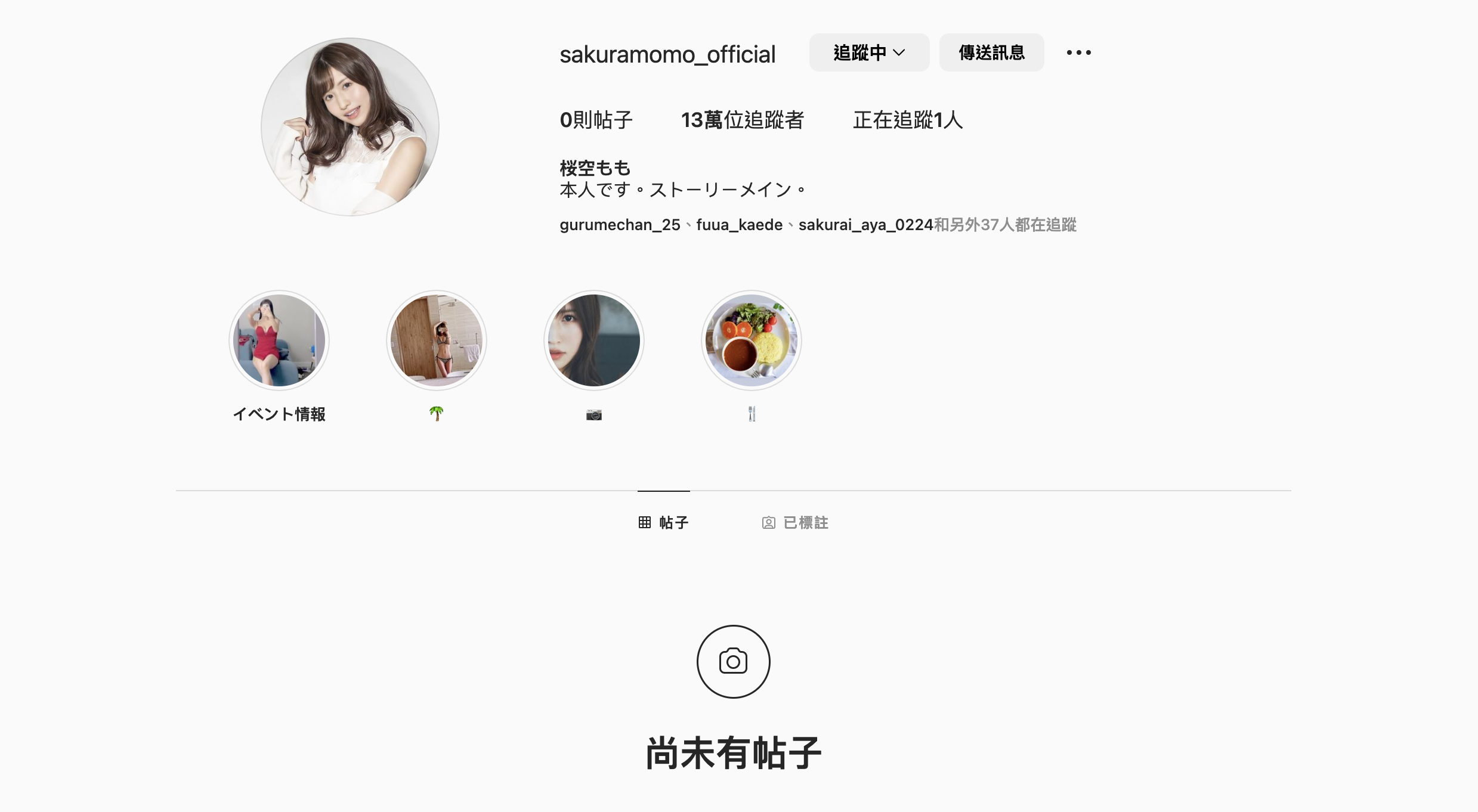 桜空もも(樱空桃)经营社群的方式和其他女优很不一样,她明明有很多漂漂亮亮的照片及影片但她只拿来和家里人回报工作状况,自己不怎么上传,甚至每过一段时她就会清空IG从头再来(大多是以限动为主);但如果你想上传她的照片甚至要标记她那她也不反对,但她要先看过你才可以上传⋯