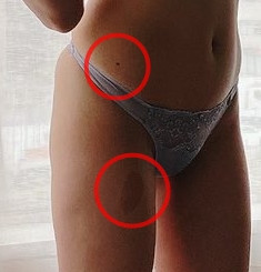 首先,我们把エイトマン(8MAN)公布的照片放大,可以看到照片女主角右腹上有颗痣,右大腿上则是有个色块;然后再来番号SSIS-050的作品「上司が出张で不在中、上司のJカップ妻とめちゃくちゃハメまくった3日间。」,直接来个影片截图,比对一下你就知道了⋯