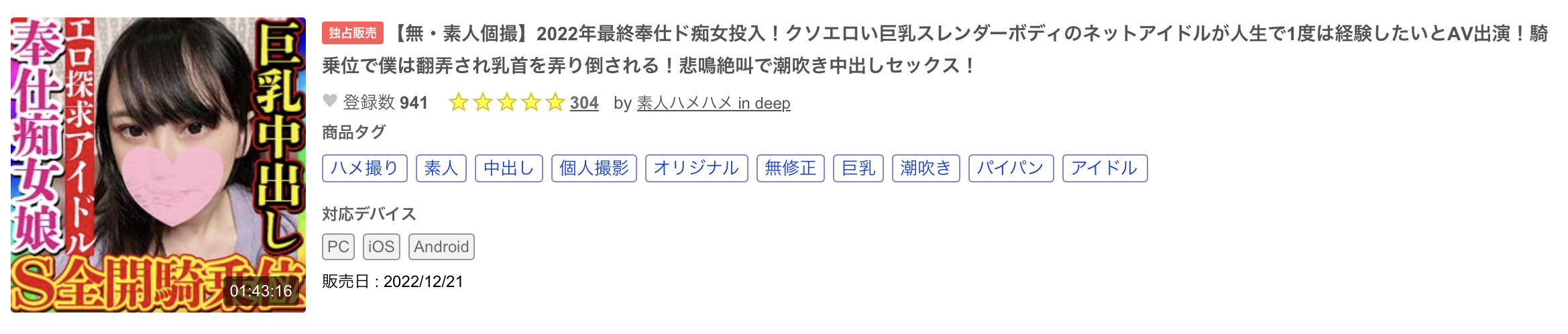 怎么确认呢?比起脸蛋,她的痣更是好认,从右边太阳穴附近、左乳下方以及肚皮的三颗痣就可以把这位在FC2发售无码片的女优和小川叶子认定为同一人ー但不只能看到她的鲍鲍啦,最奇怪的是这支作品发售的时间⋯