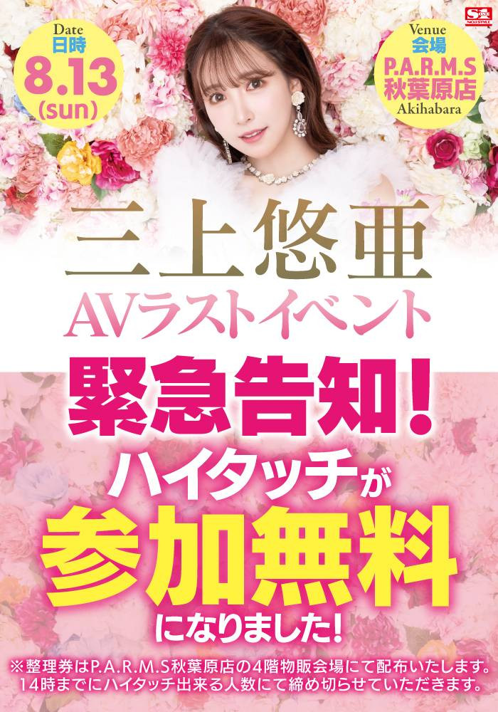 前两天看到这个公告我就觉得不妙,上面的意思只要参加活动就可以击掌,而且,免费ー是的,一毛钱都不要,在之前的报导我们都知道三上悠亜的活动要价很高然后福利的时间很短,现在突然把击掌变免费而且之前预约的粉丝可以退费,你就知道这不是三上佛心想要多接待几位影迷,而是片商和店家知道报名参加活动的影迷不如预期怕三上脸上无光所以赶紧催票了⋯