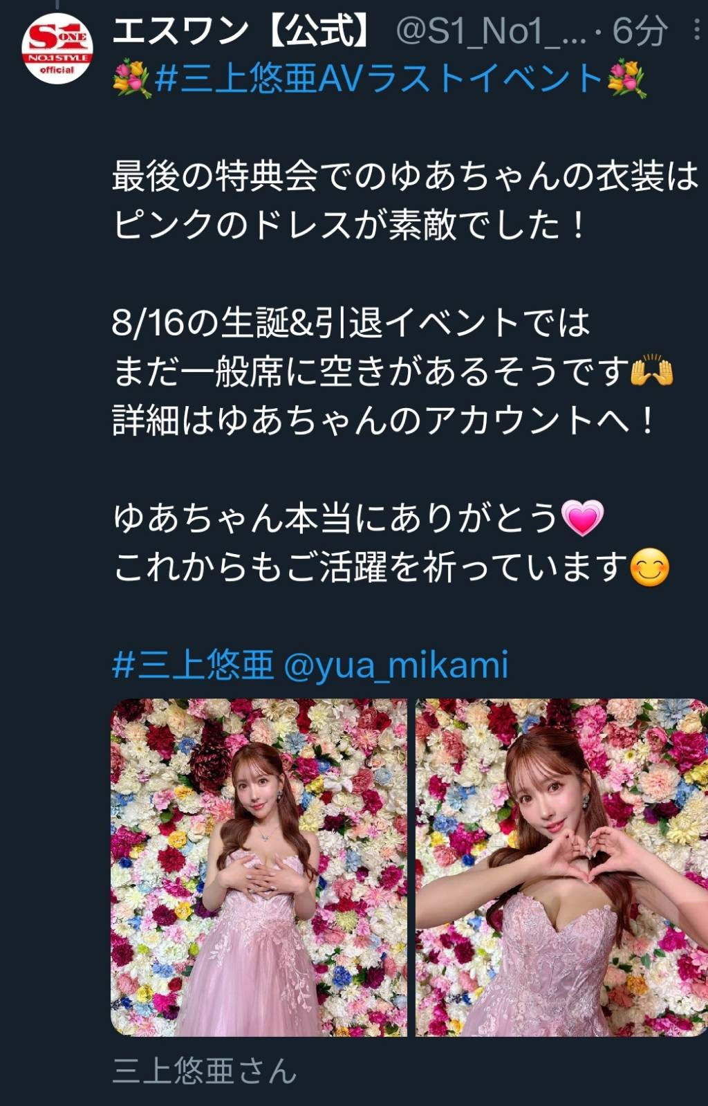 为什么?可能是门票太贵、可能是福利太少太短也有可能是目前三上主力客群的女粉对这样的活动不感兴趣,但不管怎样这样对三上来说绝对是很没面子的事;不过大家也不用高兴(或感慨)得太早,接下来的16日还有一个她自己举办的活动,到时我们就知道三上是真的退烧了还是大家觉得引退见面会CP值太低不值得去改去参加她自办的引退趴踢ー