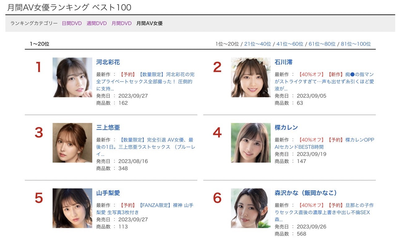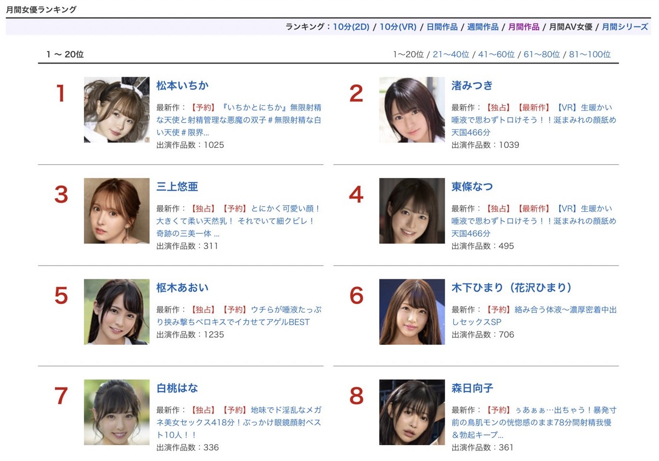 马上来看FANZA(DMM)刚刚公布8月销售排行榜!