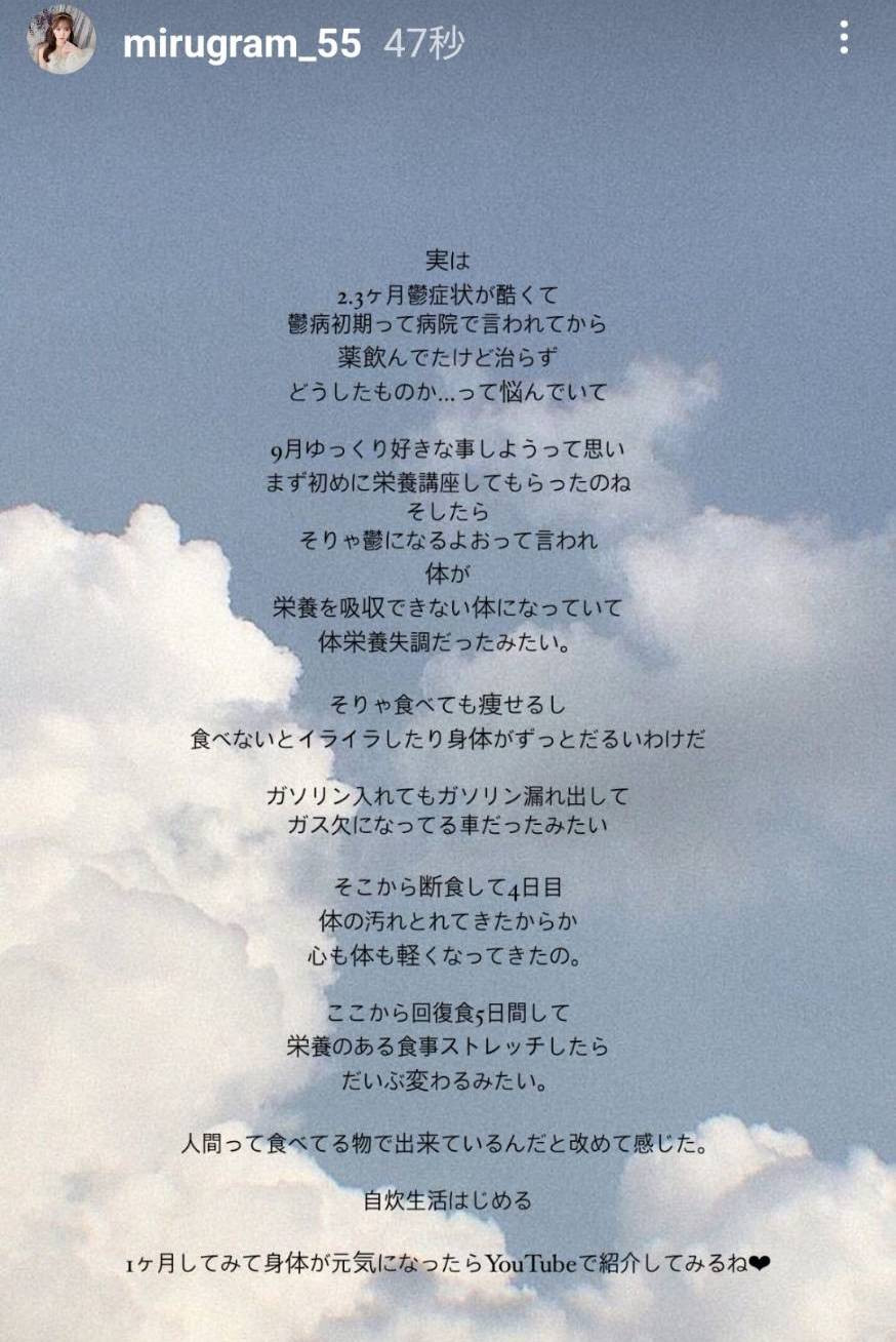 今天miru的IG限动就让人很心疼,我直接翻译如下: