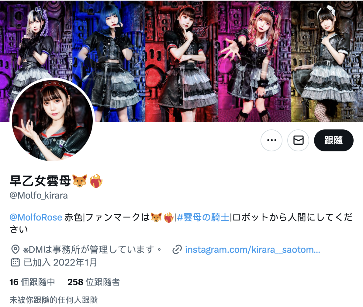结果对不起,她真的是偶像,她是MolfoRose的「早乙女云母」(https://twitter.com/molfo_kirara)!