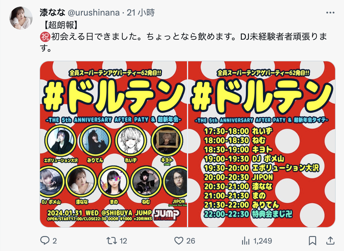 然后她已经有新工作了,2024年1月31日她即将以DJ的工作登台和大家见面,所以可以做结论了,「木村好乃美」已经没了,这位女优将会以「漆なな(漆奈奈)」的新名字继续在AV界打拼,以业界的规则就是要等木村好乃美的作品发完她才会以新的艺名发片⋯