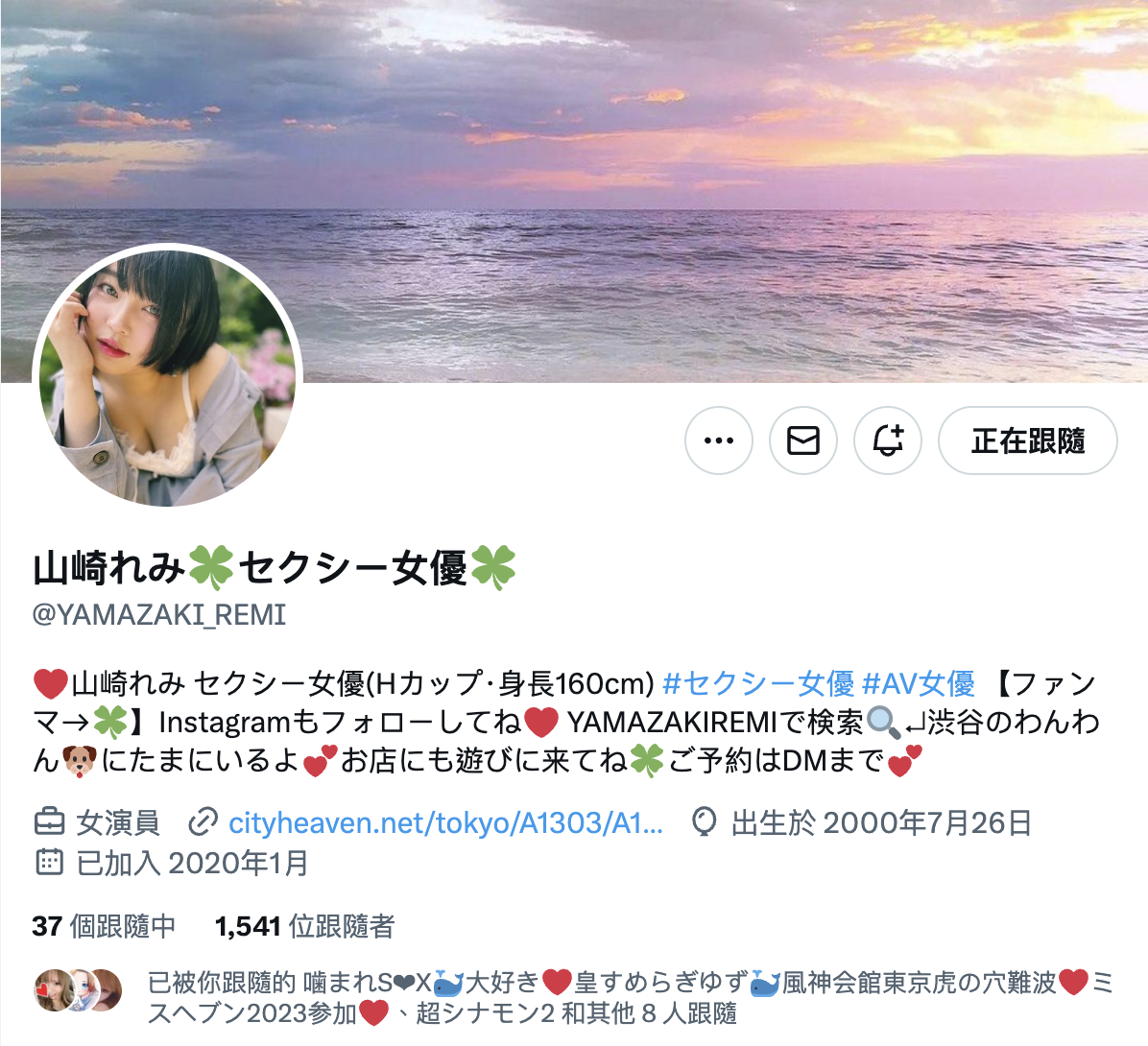 这样女优不是很惨?也不见得啦,山崎れみ(山崎丽美)也有她的打算,首先,她有X(https://twitter.com/YAMAZAKI_REMI)和IG(https://www.instagram.com/yamazakiremi/) ,但可不要以为她的社群是用来宣传AV作品的ー事实上,点进她自我介绍栏的连结,你就会发现她的真实身分: