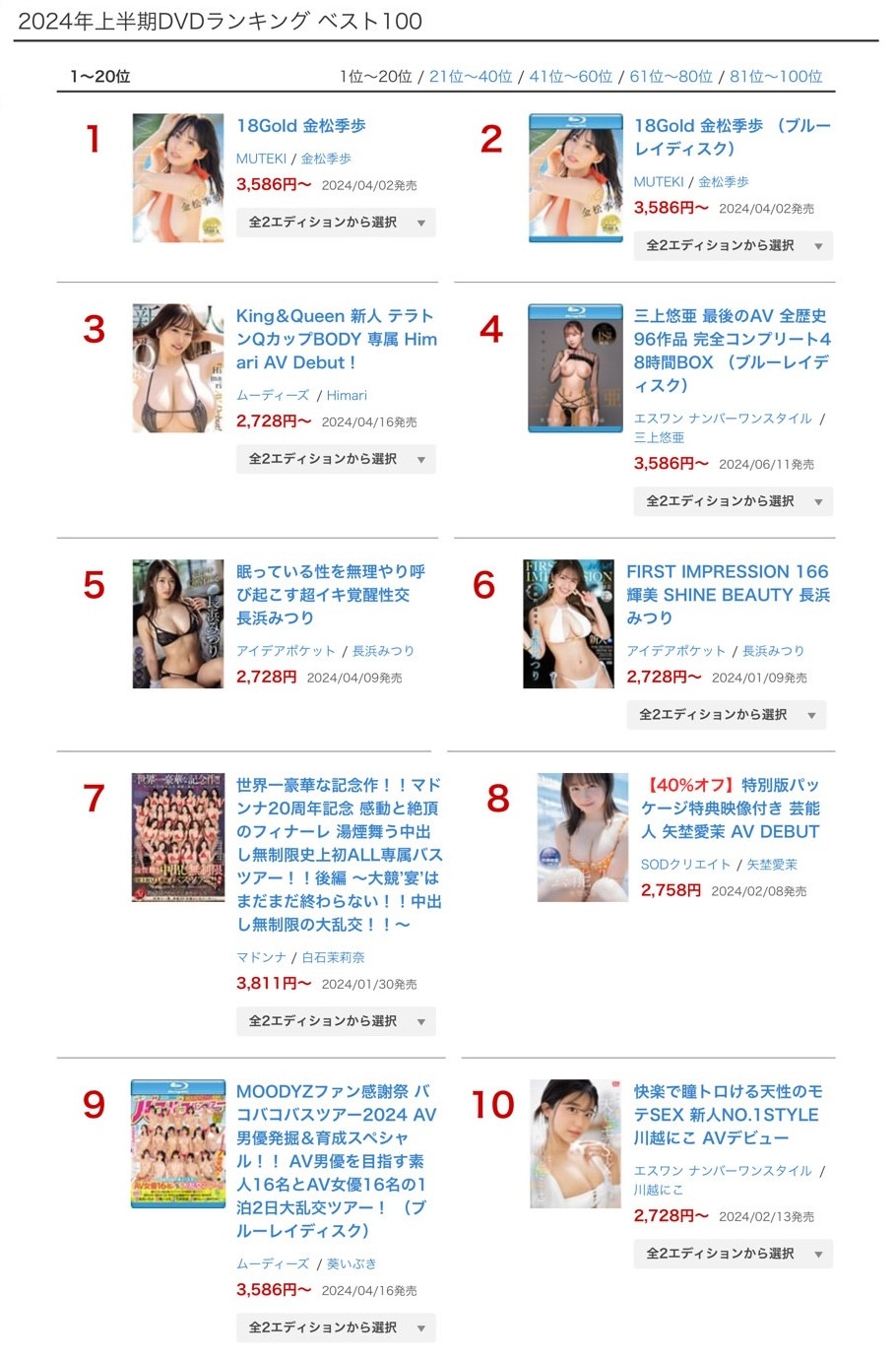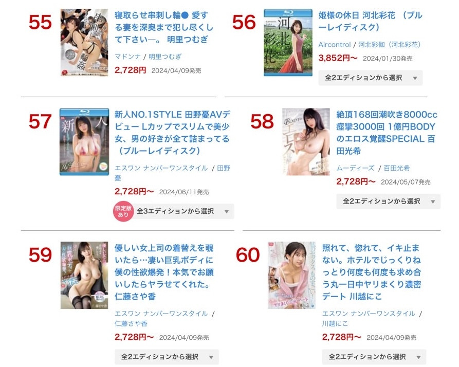 是的,拖了好几天,我终于要来谈FANZA公布了好一阵子的「2024上半期ランキング(2024上半年实体DVD作品销售排行榜)」:
