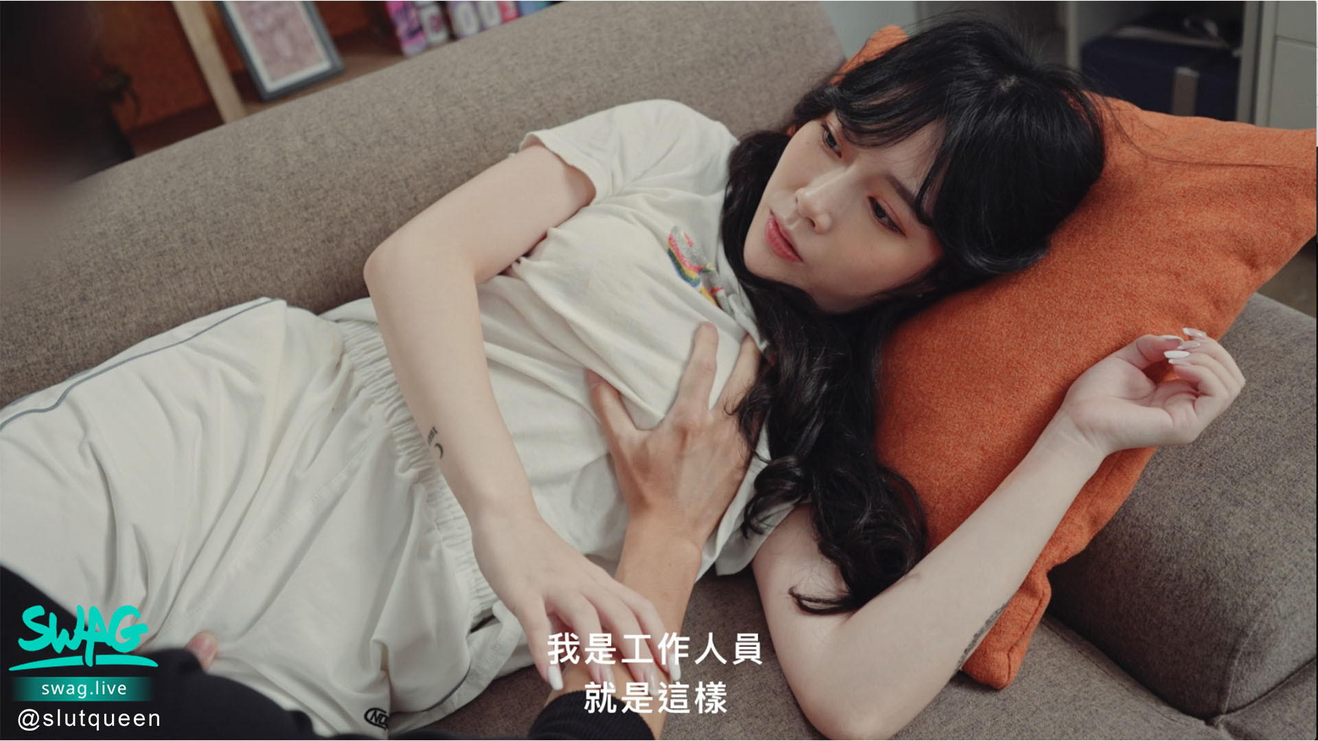 光是这样当然不行,换个场景,海绵体充饱血的两人正一前一后地冲撞沐沐的两张嘴ー可能很多人会觉得这支作品很跳Tone,场景变化太快,现场男女优与导演讨论演出细节也都被收了进去,但我觉得向来对作品很有想法的沐沐一开始就打算这麼做,请相信也和SWAG合作过的我,片子就是这麼拍的,你必须不断沟通细节,把握男优充血的时候快马加鞭完成演出: