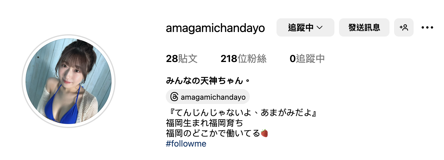 我大概是2月的时候知道了她的,当然不是我有多厉害,而是在TRE女优素材时与经纪人闲聊他主动秀给我看这位新人的IG(https://www.instagram.com/amagamichandayo/)ー当时我的看法是「孩子叫天神啊真有趣」、「到时候应该会换艺名吧」,想不到她在SOD STAR出的艺名就是「天神道羽衣」!